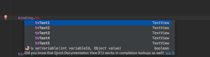 BaseObservable을 상속받아서 setXXX(), getXXX()함수를 만드는게 귀찮다면 ObservableField를 사용할 수 있습니다.