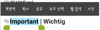 이런식으로, Important를 꾹~ 눌려서 (Long press) Text를 Select한 뒤에 나오는 메뉴에서
