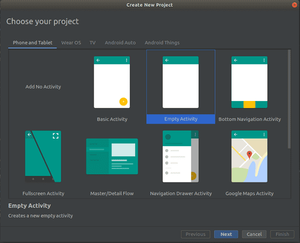 Empty Activity로 생성합니다.