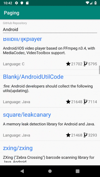 Paging은 LiveData, ViewModel, Room 등과 사용하도록 구현이 되었습니다. 또한 RxJava를 지원하기 때문에 LiveData 대신에 RxJava를 사용할 수도 있습니다.