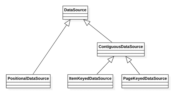 - PositionalDataSource: 위치기반의 데이터를 로딩하는 DataSource입니다. 셀 수 있는 데이터, 고정된 사이즈의 데이터를 로딩할 때 사용됩니다. 만약 끝을 알 수 없는 무한대의 아이템이라면, ItemKeyedDataSource 또는 PageKeyedDataSource이 적합합니다. Room은 PositionalDataSource 타입의 소스를 제공합니다.