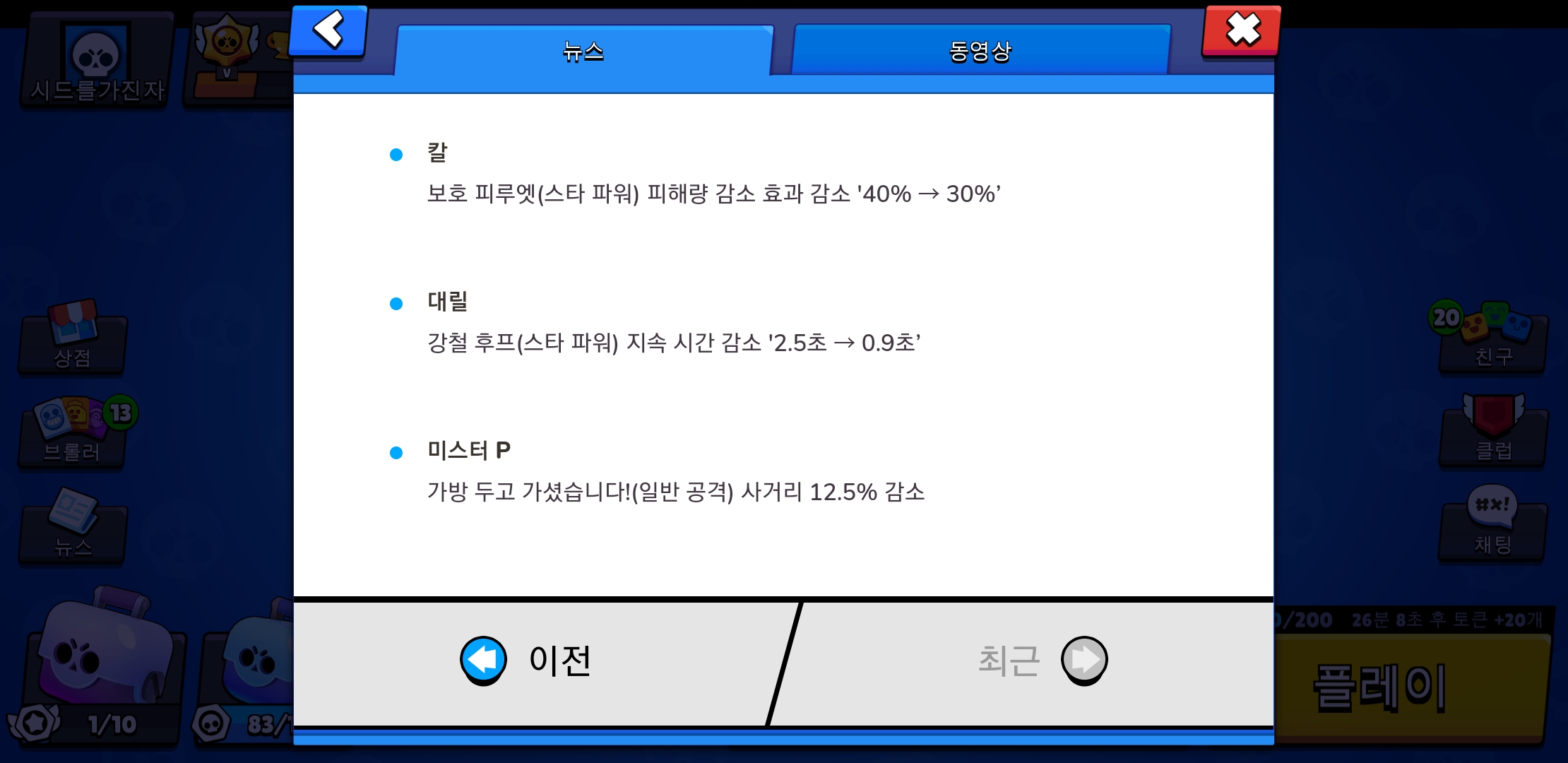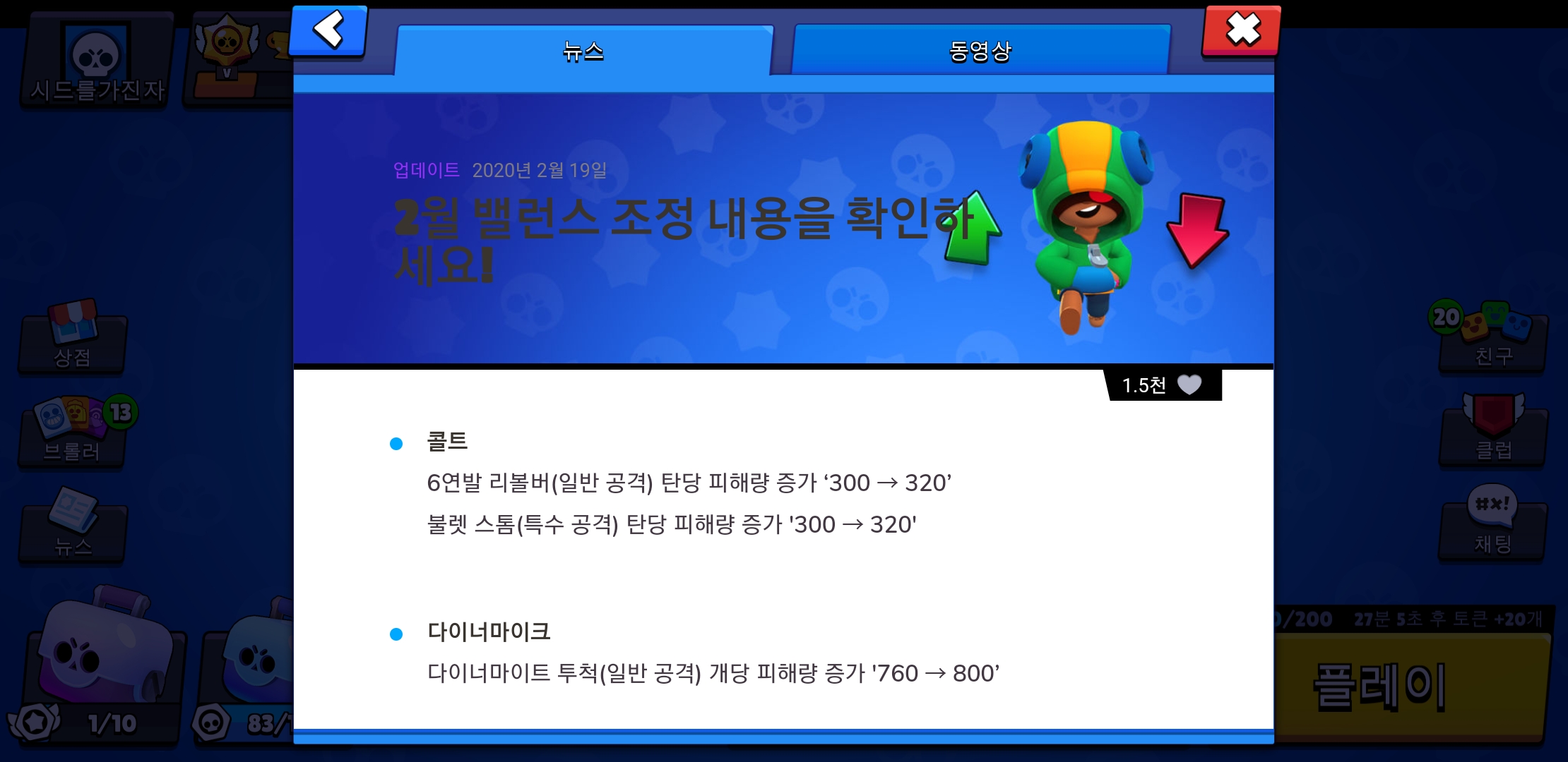 오늘 브롤스타즈 밸런스가 조정되었다.