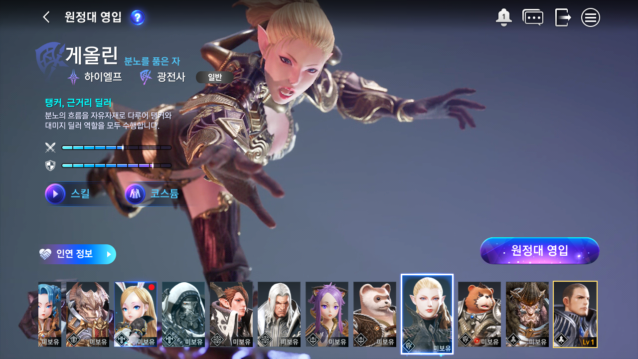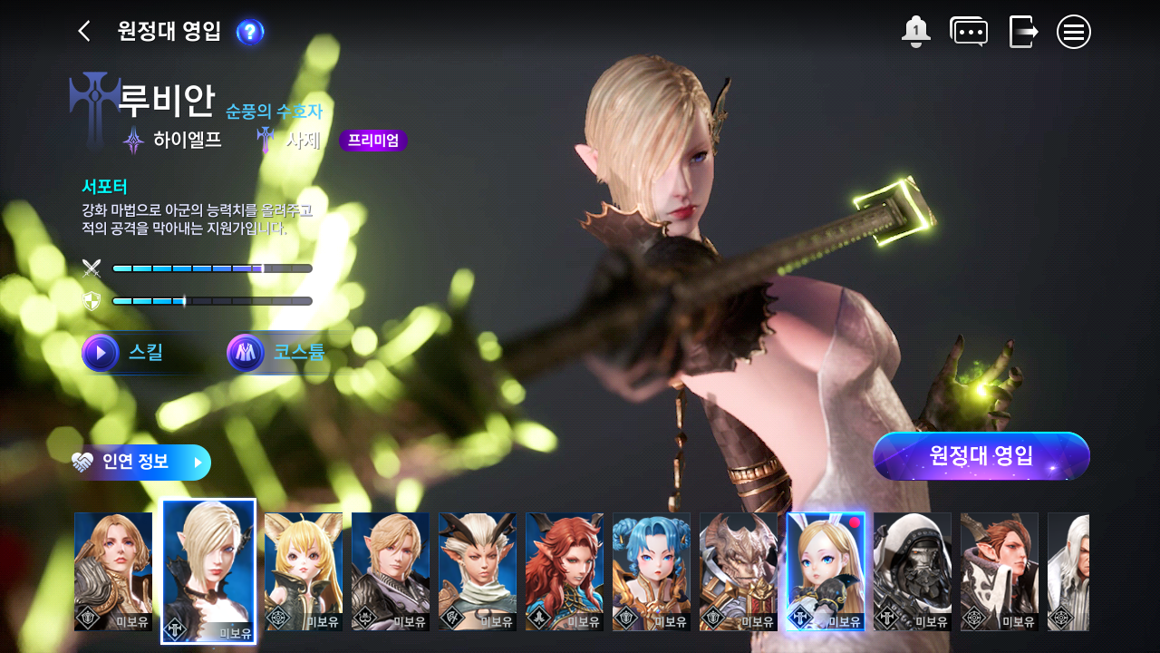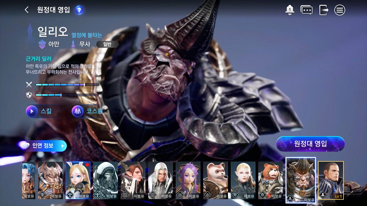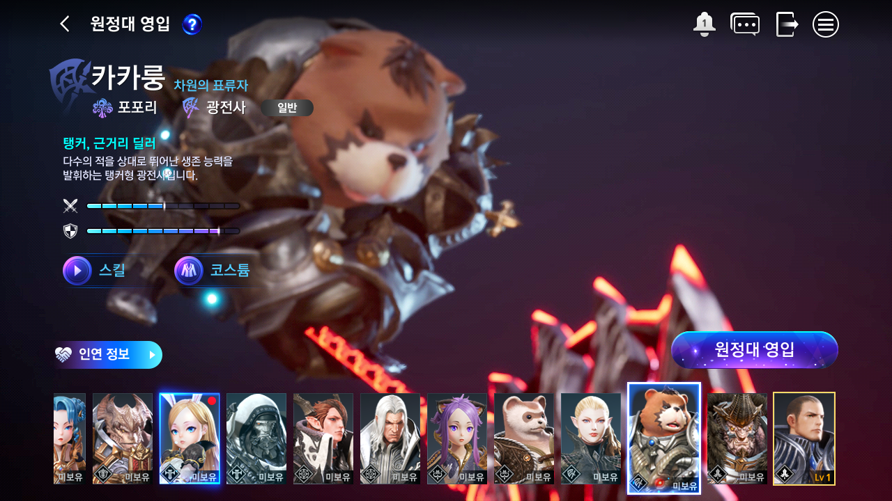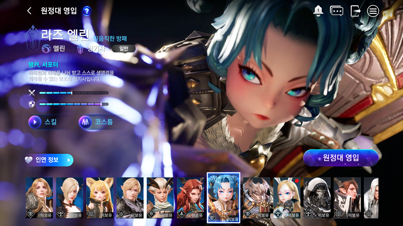 메뉴 중 원정대 영입에서 영입을 할 수 있다.