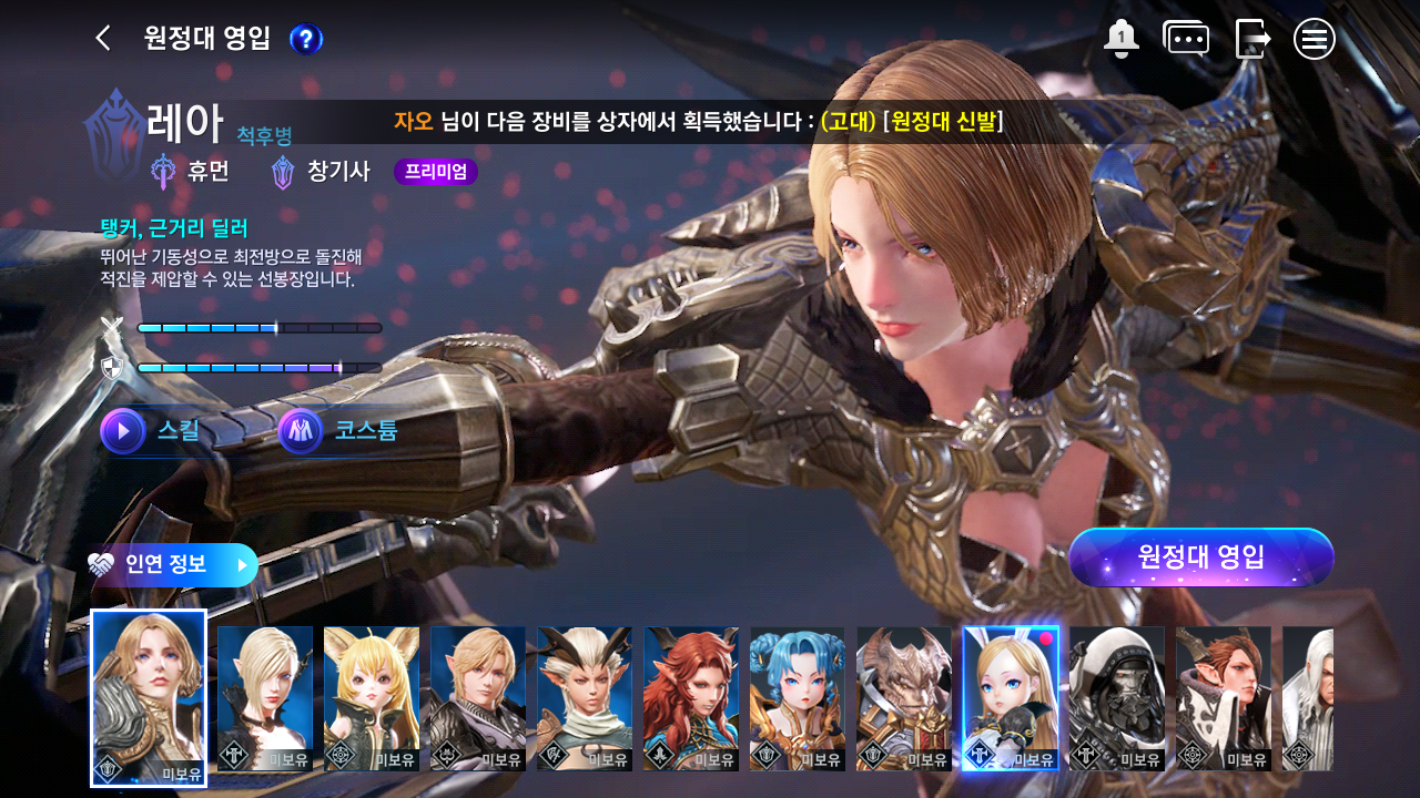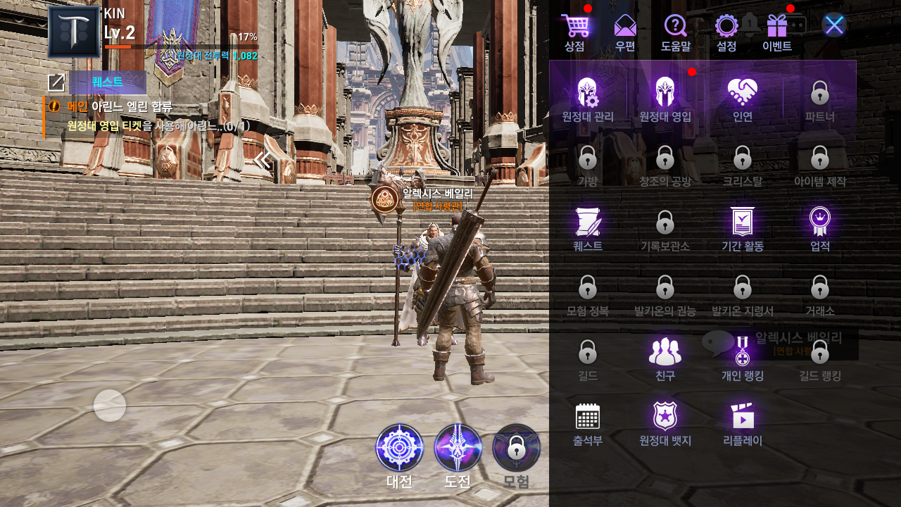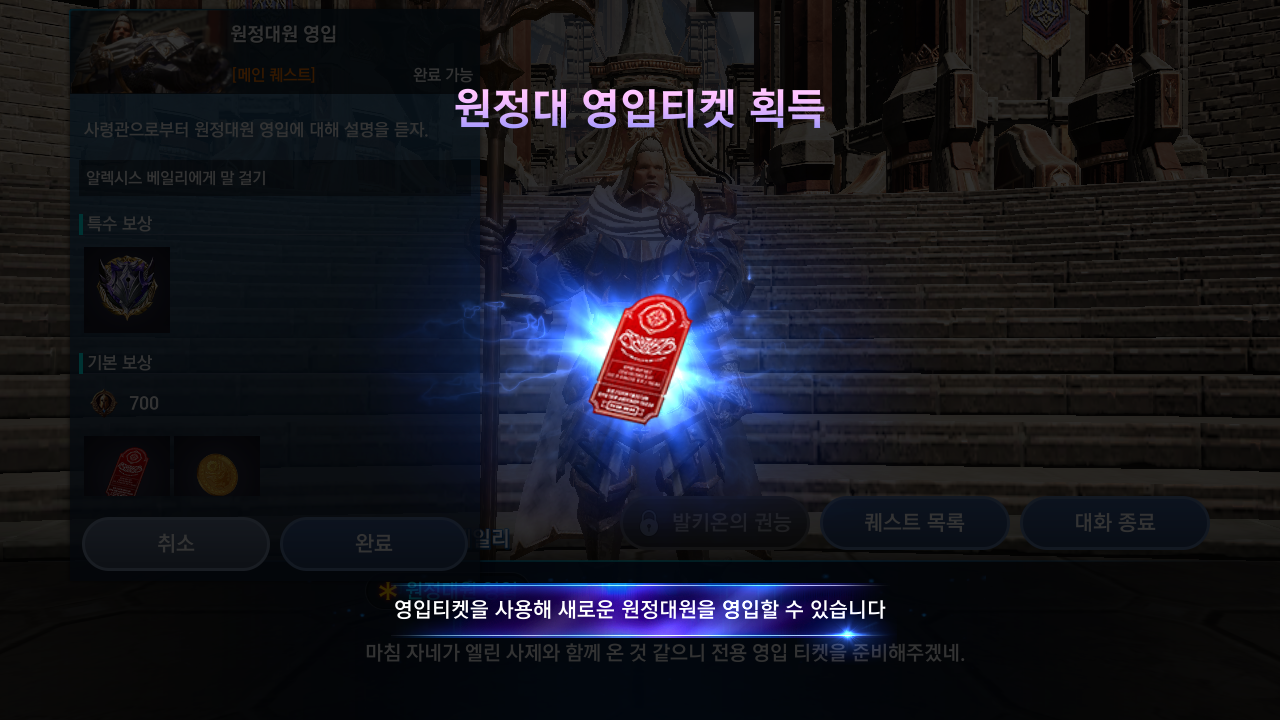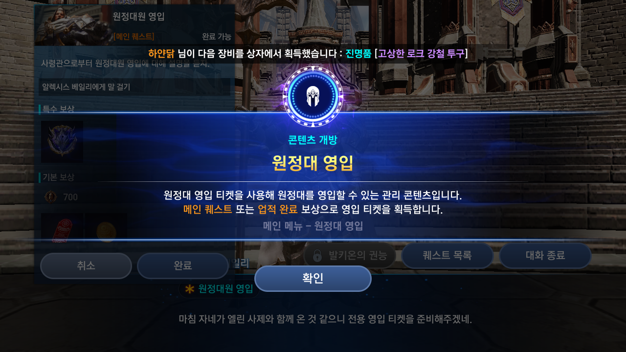초반에 퀘를 진행하면 원정대를 영입할 수 있는 콘텐츠가 개방된다.