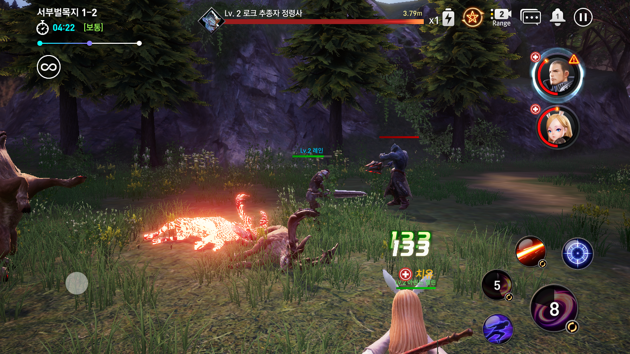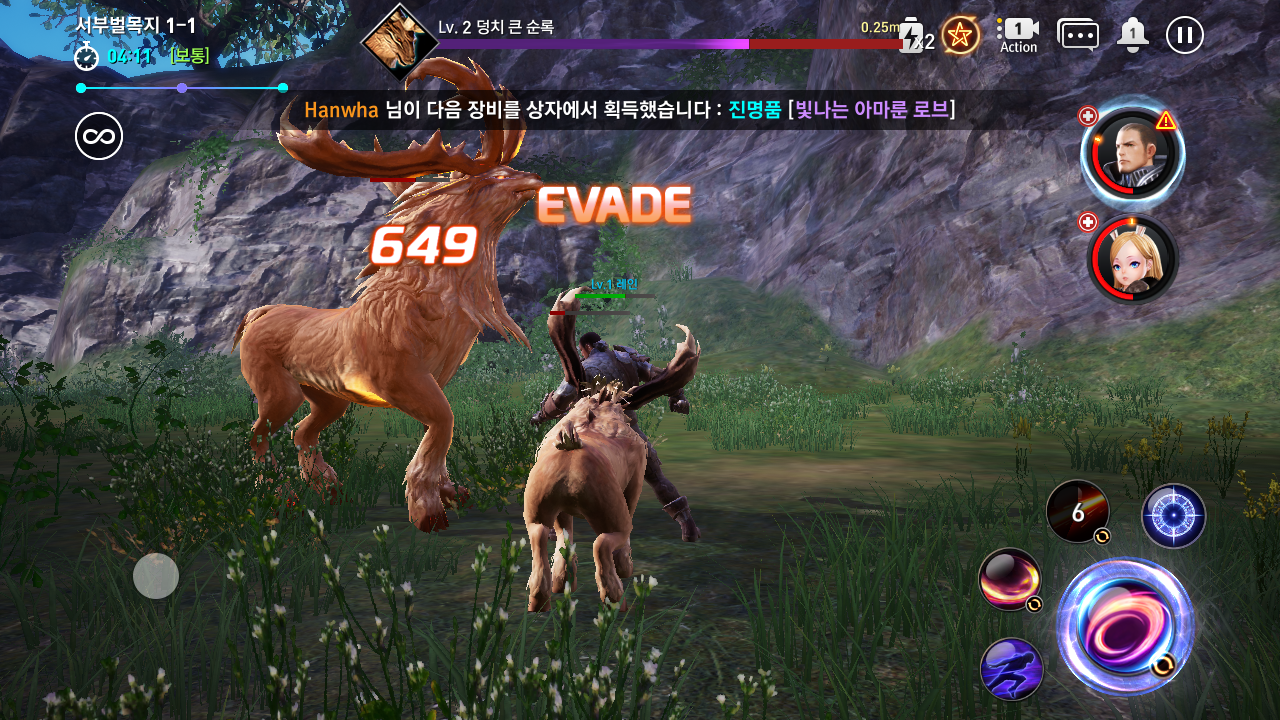 오른쪽에 있는 캐릭터 얼굴을 선택하면 해당하는 캐릭터가 선택되고 스킬을 사용할 수 있다.