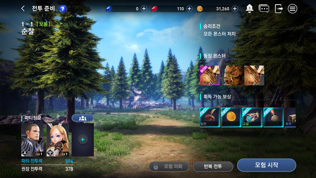 다른 게임처럼 각 맵 마다 등장하는 몬스터와 획득가능한 보상이 있다.
