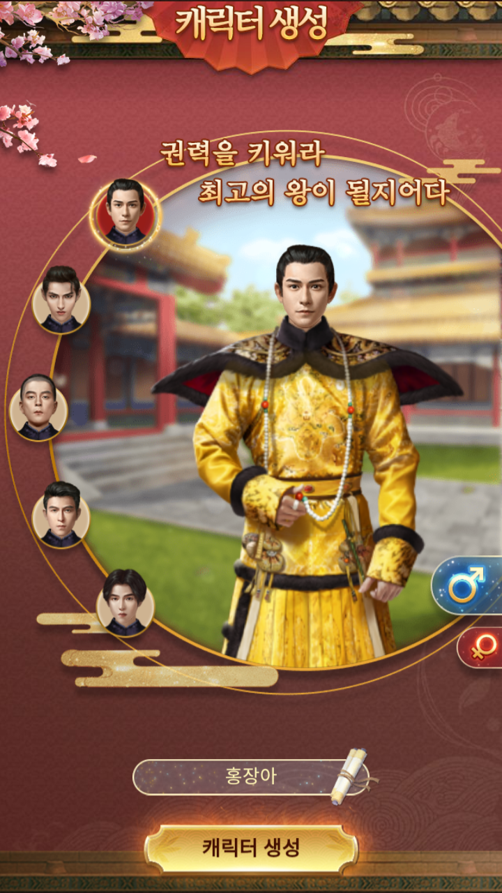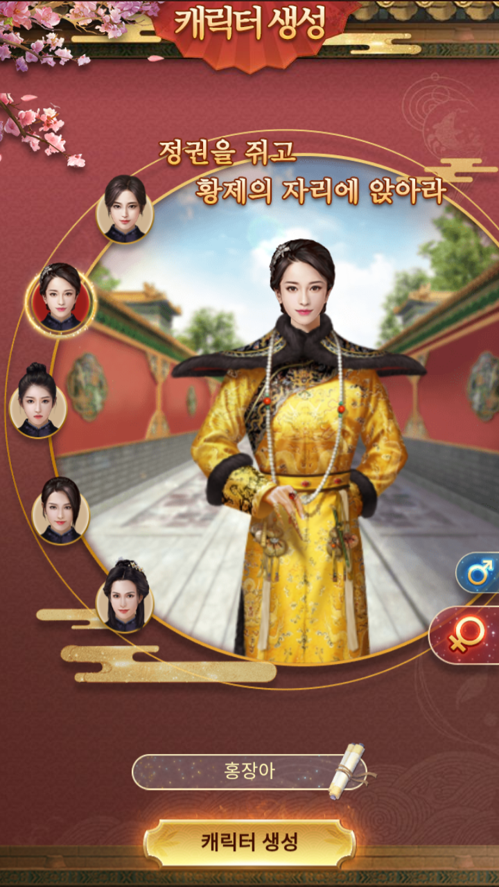 캐릭터를 고르고 메인화면에서 미녀를 선택하면 미혼인 여자목록을 조회하거나 랜덤시침을 할 수 있다.