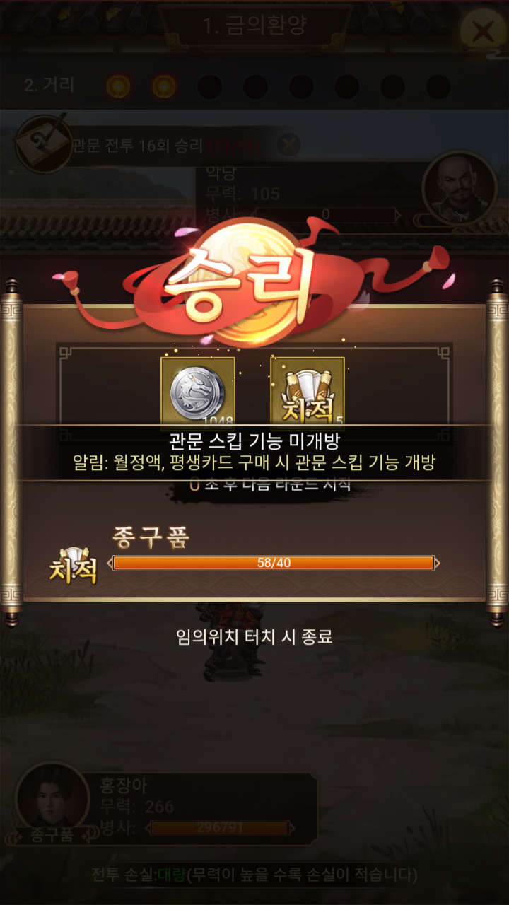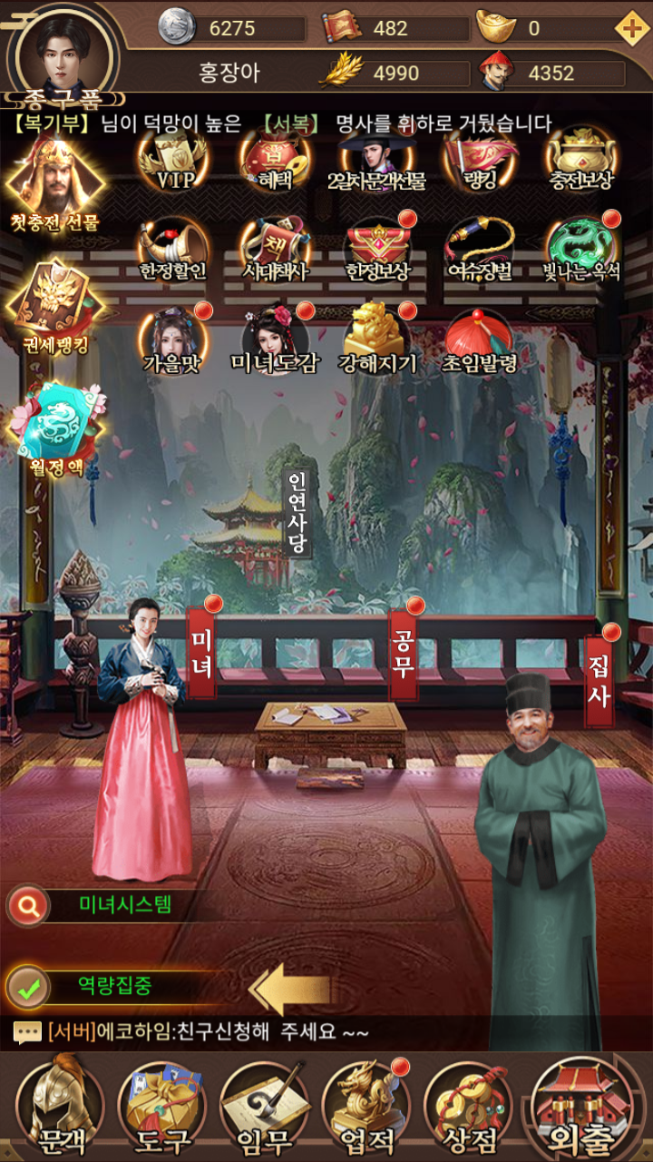 문객메뉴에는 보유한 문객이 나오는데 해당 문객은 퀘스트를 통해서 추가로 얻을 수 있고, 레벨업도 할 수 있다.