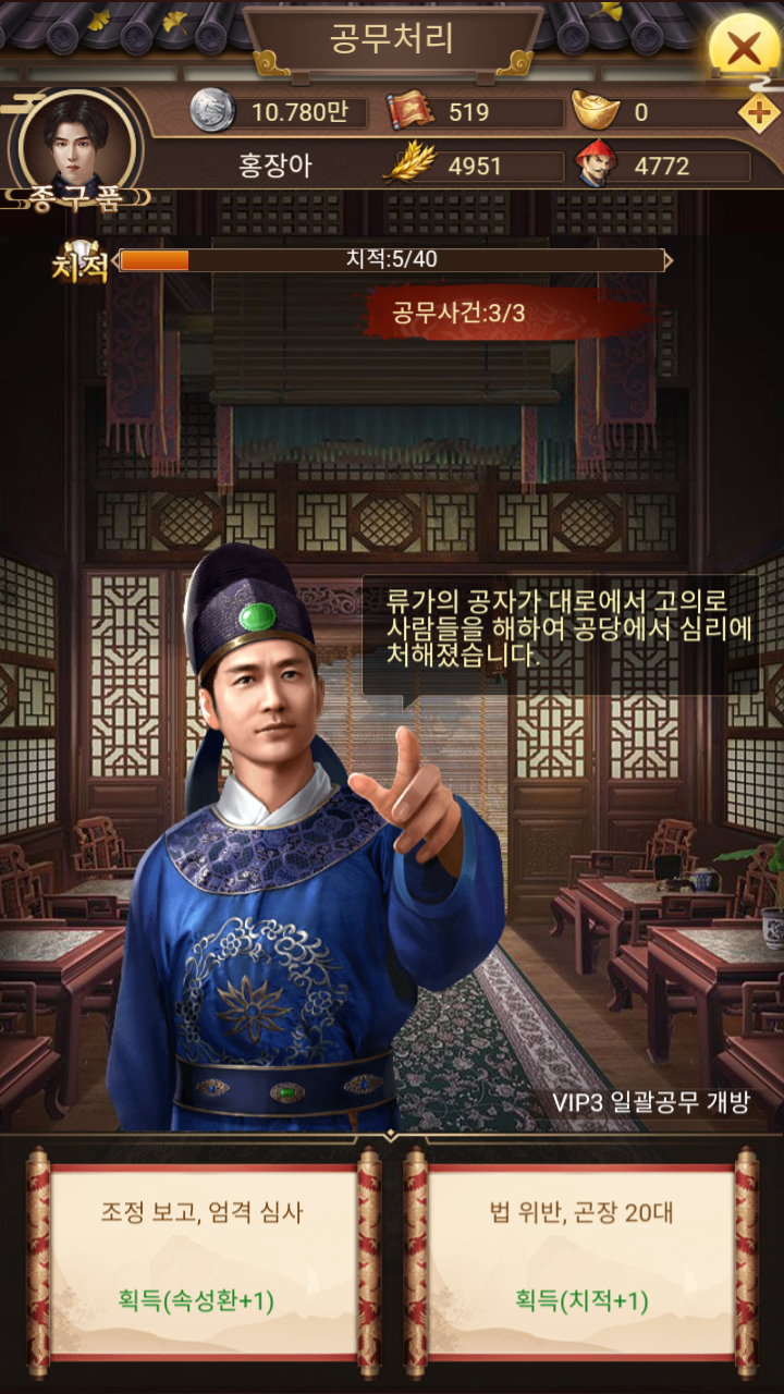 퀘스트를 하다보니 치적이 일정량 오르면 승진도 할 수 있다.