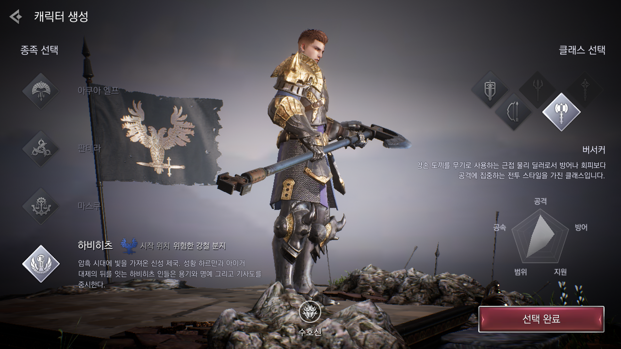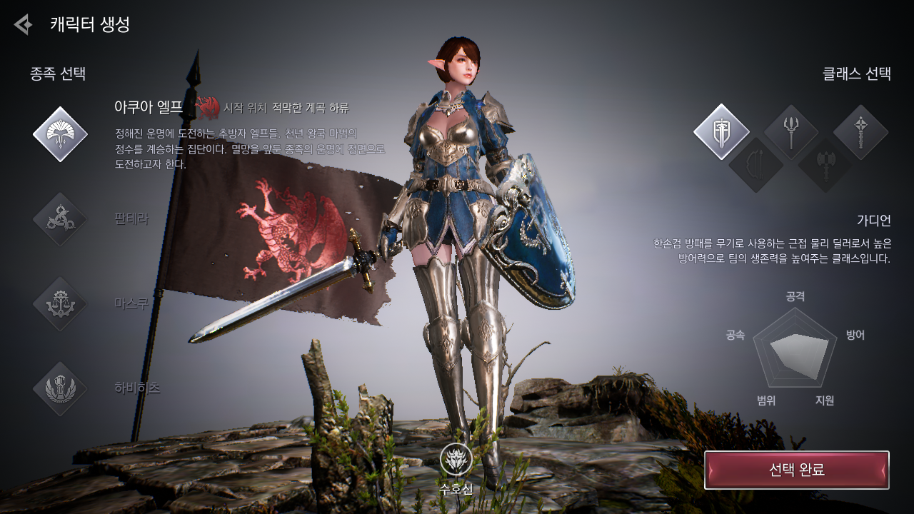 종족은 아쿠아 엘프, 판테라, 마스크, 하비히츠 4가지가 있고, 각 종족별로 선택할 수 있는 클래스가 3개씩 정해져 있으며 클래스는 가디언, 레인저, 메이지, 버서커, 팔라딘 5가지가 있다.