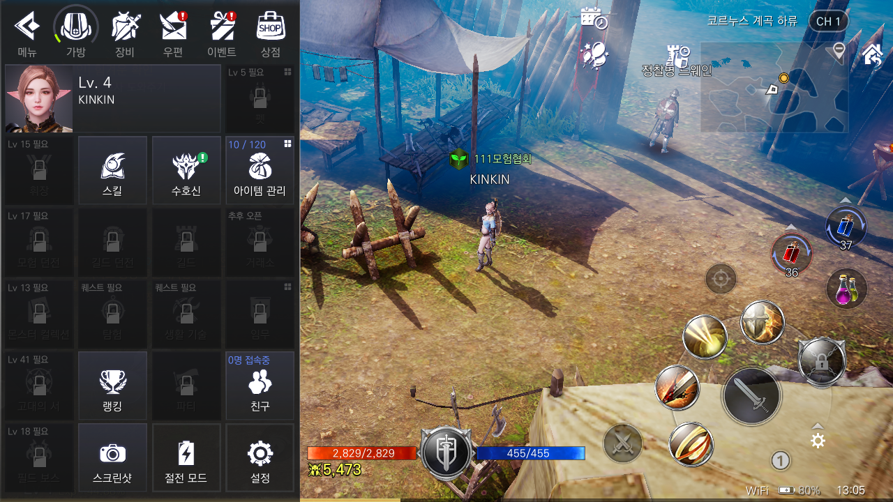 캐릭터 생성을 하고 게임을 시작하면 처음에 초보자 길드에 자동으로 가입이 되고 시작한다.