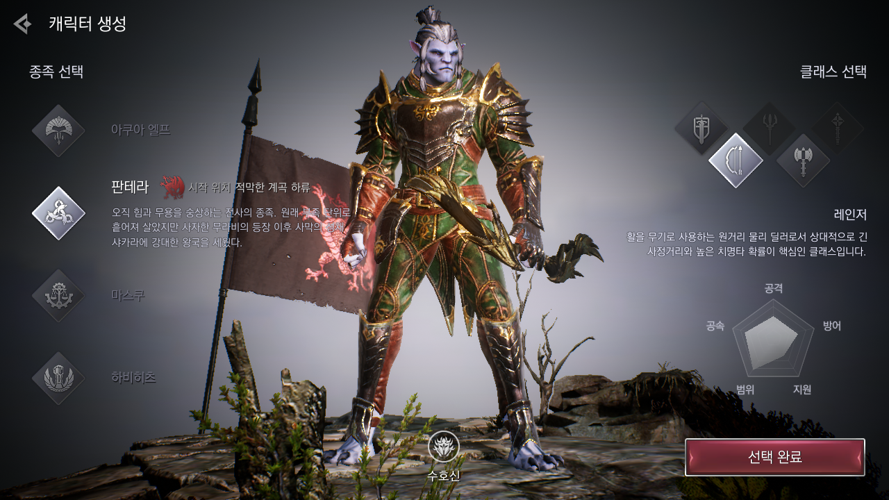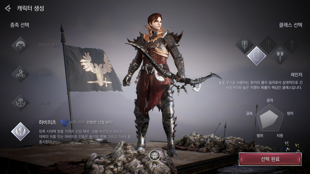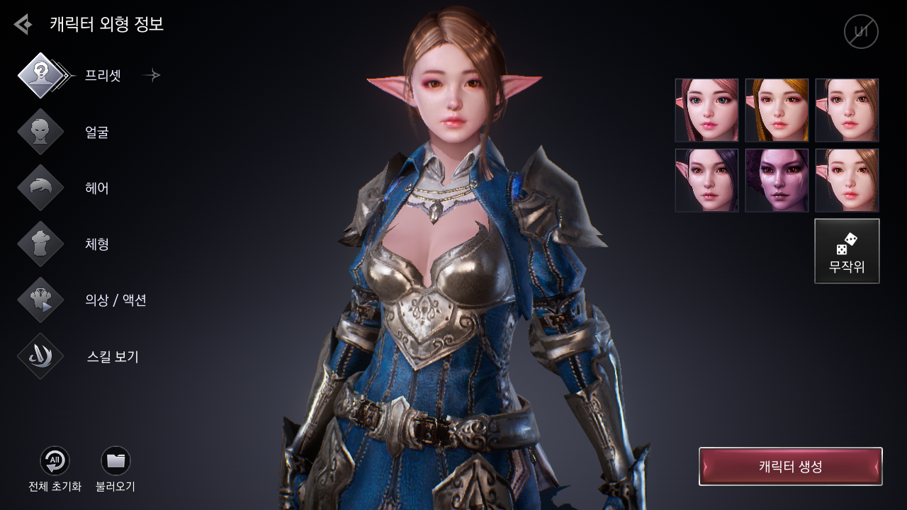 종족과 클래스를 선택하면 캐릭터 외형을 꾸미는 화면이 나온다. 얼굴이나 헤어 체형등 원하는 것을 선택해서 꾸밀수 있다.