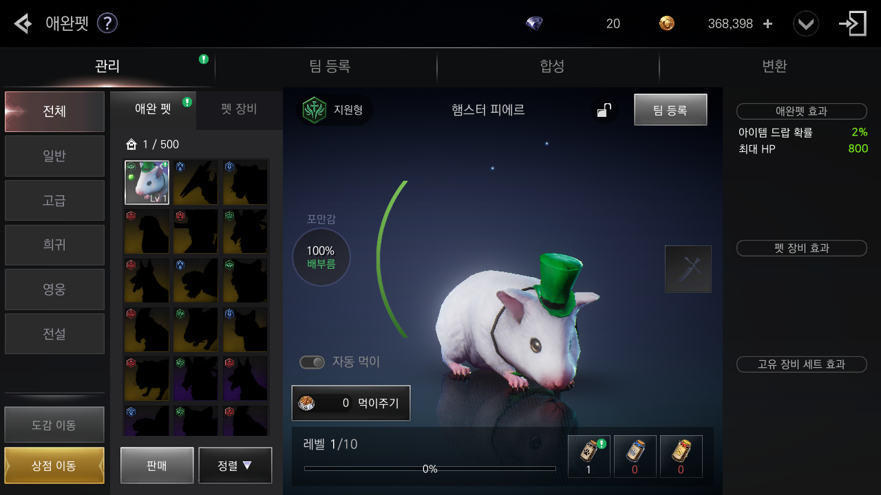 5레벨이 되며 애완펫 메뉴가 활성화되고 펫을 소환해서 같이 데리고 다닐 수 있다.