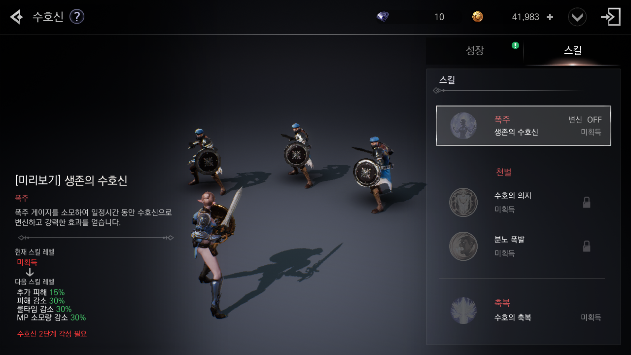 블레스 모바일에는 수호신이라는 시스템이 있는데 수호신으로 변신도 하고 스킬도 사용할 수 있는거 같다.